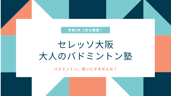 セレッソ大阪大人のバドミントン塾 長居校 令和2年3月開催のご案内